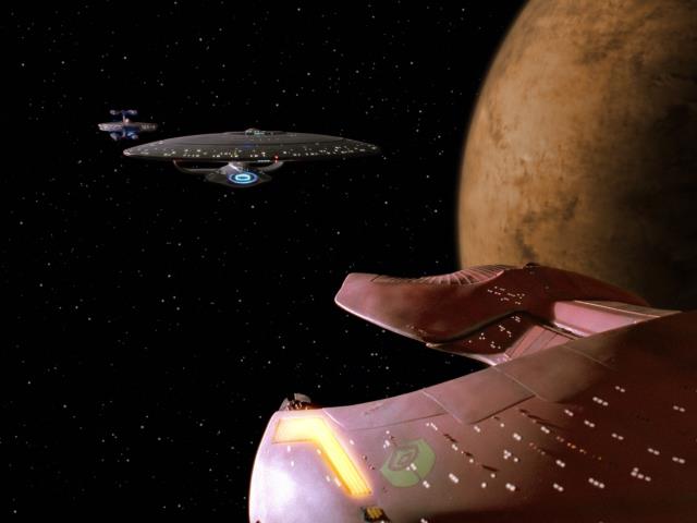Commander Riker and Captain Picard are pitted against each other in a Starfleet war game administered by Zakdorn Sirna Kolrami, with Picard helming the Enterprise and Riker the U.S.S. Hathaway, an 80-year-old clunker. With their real weapons systems off-line, a Ferengi ship ambushes the disabled Enterprise and Hathaway.