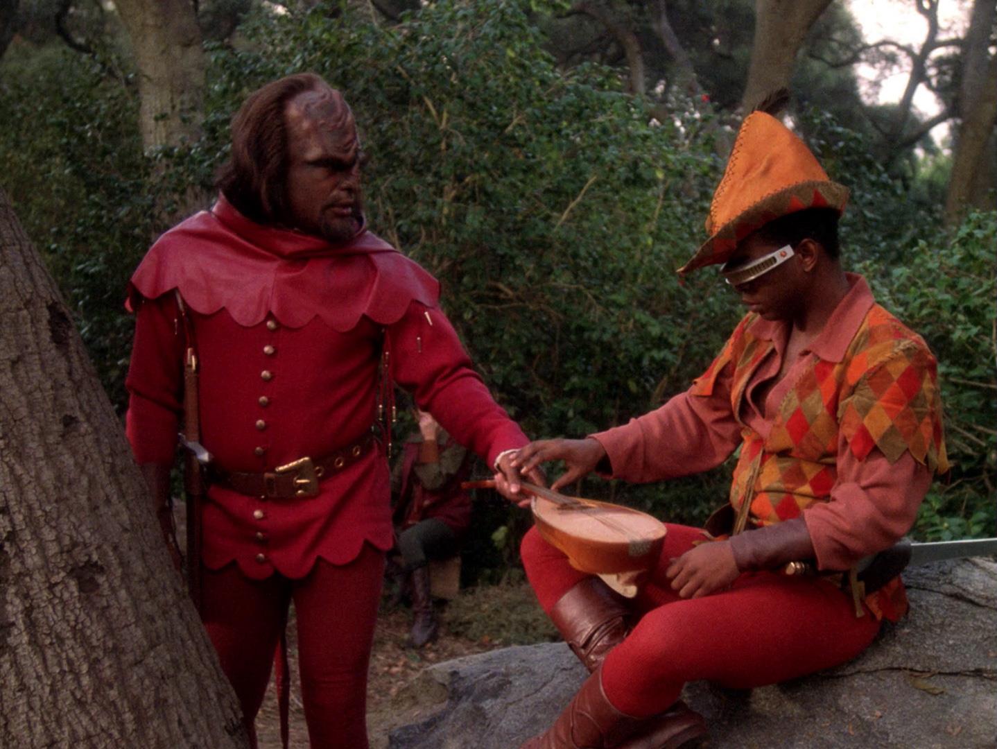 - Worf gets to say "I protest! I am not a merry man!"