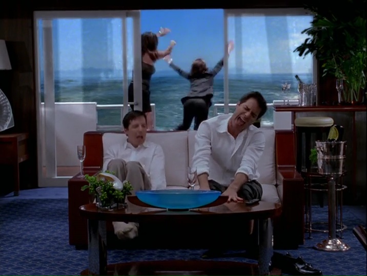 It's anchors—and antics—aweigh in the fifth-season finale, as the gang sets sail on a yacht owned by Karen's late husband, Stanley. She's planned a Caribbean cruise to scatter at sea the ashes of her spouse. But as Jack and Will frolic, Grace frets. That's because her hubby, Leo, is keeping company with a very seductive MD while on a medical assignment in Guatemala. Karen, too, is troubled, admitting that "I don't know what I'm going to do without you, Stanley"—a sentiment echoed by a confrontational stowaway.