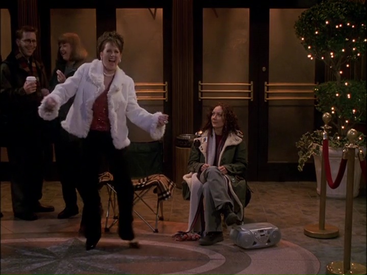 Opting out of the annual Grace Adler Design Christmas party, ultimate "Fanilow" Will spends the night waiting in line for tickets to a special Barry Manilow concert — only to have his weak bladder force him to make a quick pit stop and entrust Grace to hold his place. However, Will's snubbing of an overweight man in the bathroom line leaves his chances of meeting his idol in doubt. Meanwhile, a distraught Grace discovers her mother has cancelled on their annual Hanukkah shopping spree to have dinner with Jack, as Karen discovers the inspiring music of Manilow.